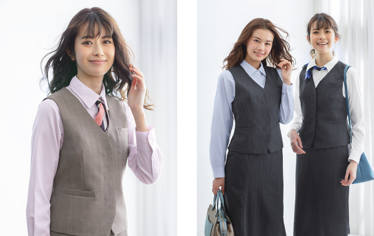 従来の事務服と比べて私服に近い感覚で着用できるので、気分が上がります。 事務仕事の他に商談や接客の仕事もありますが、どのシーンにもマッチする制服だと思います。(不動産30代)